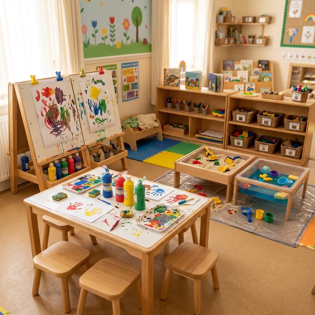 Painting, water play, or sand exploration.
