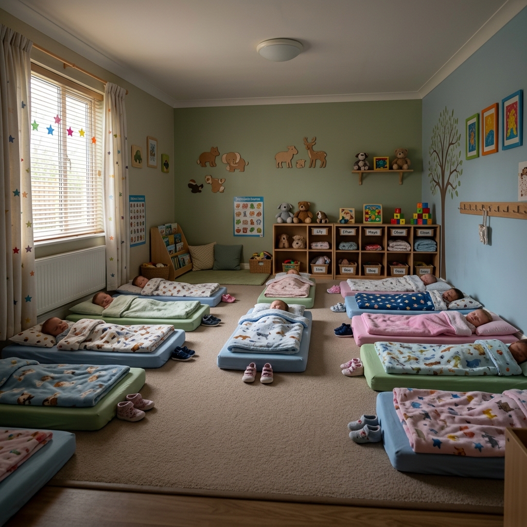 Quiet rest on individual sleep mats.